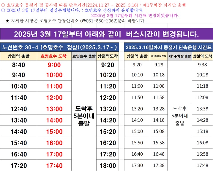 ♣ 2025년 호명호수 정상까지 가는 버스 30-4버스 운행시간표