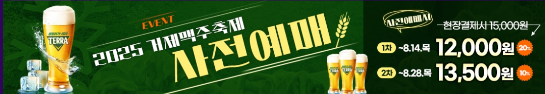 참고로 2025 거제맥주축제는 유료 축제로 사전예매 시 할인 혜택이 제공되니 이점 고려하여 미리 준비하세요.