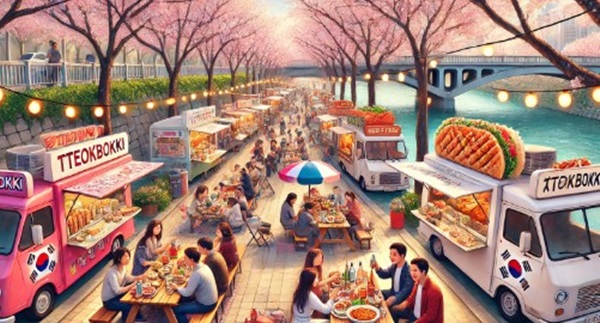 벚꽃과 푸드트럭이 만나는 봄날의 행복